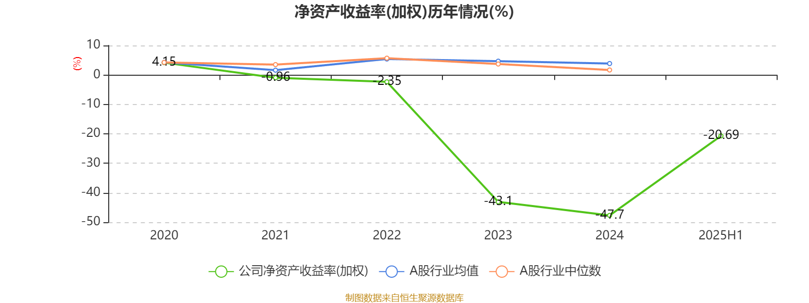2025年上半年,公司平均净资产收益率为-20.69%,较上年同期下降9.97个百分点。