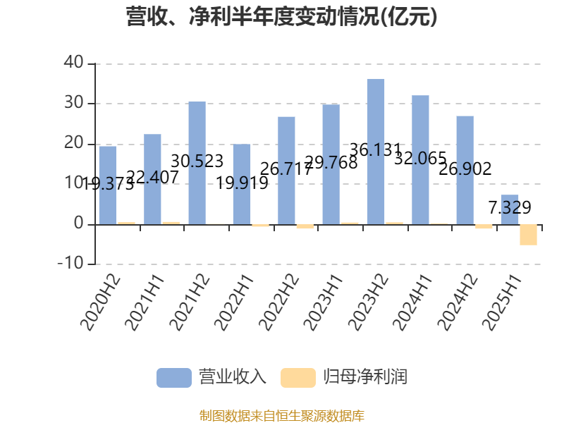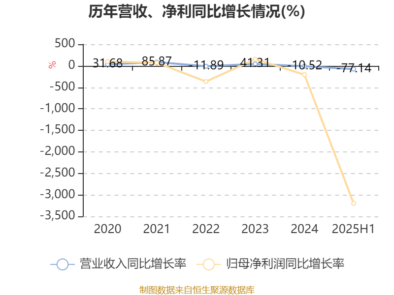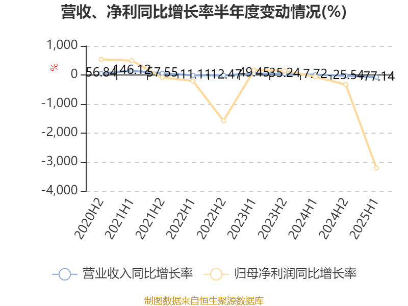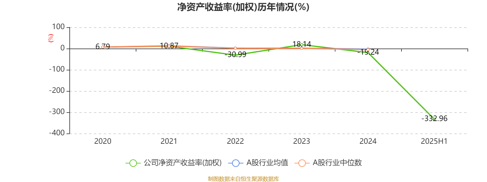 2025年上半年,公司平均净资产收益率为-332.96%,较上年同期下降336.19个百分点。