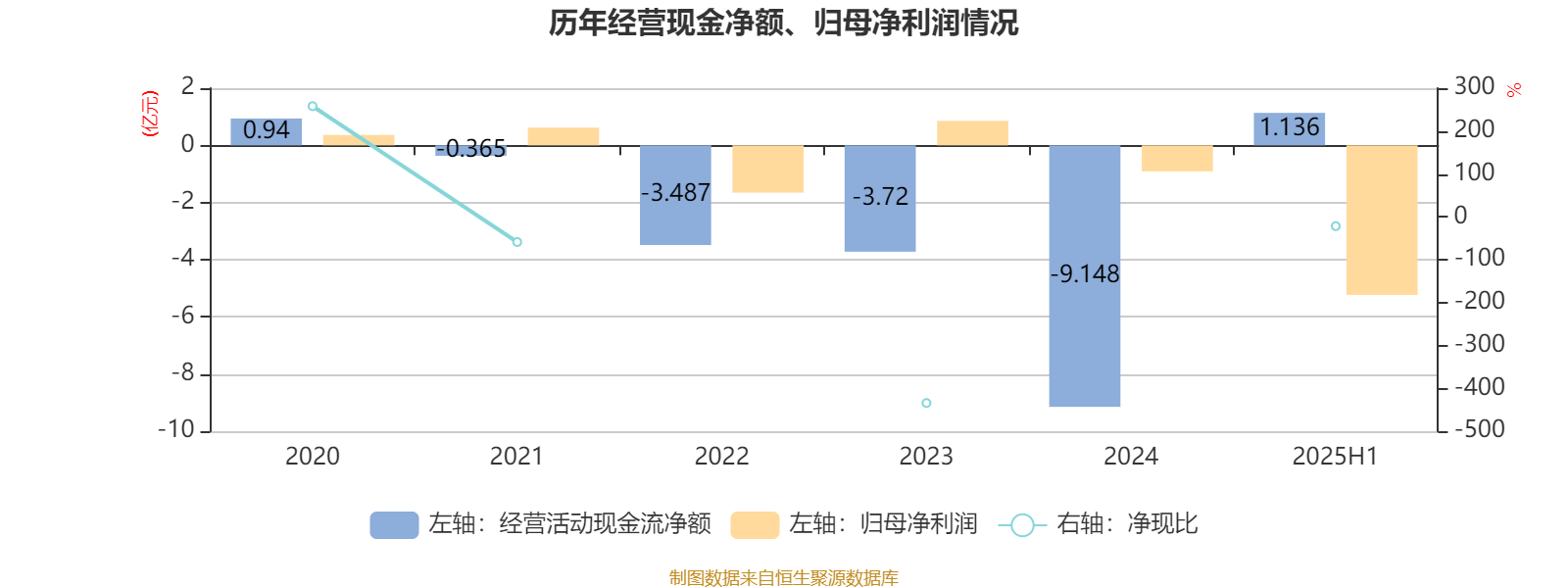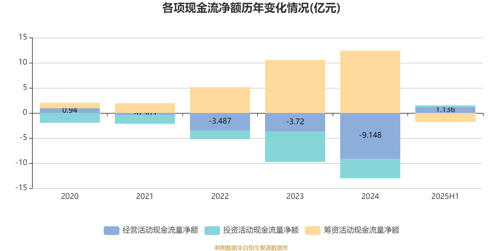2025年上半年,公司经营活动现金流净额为1.14亿元;筹资活动现金流净额-1.81亿元;投资活动现金流净额3723.8万元。