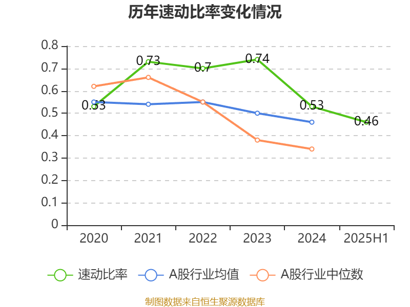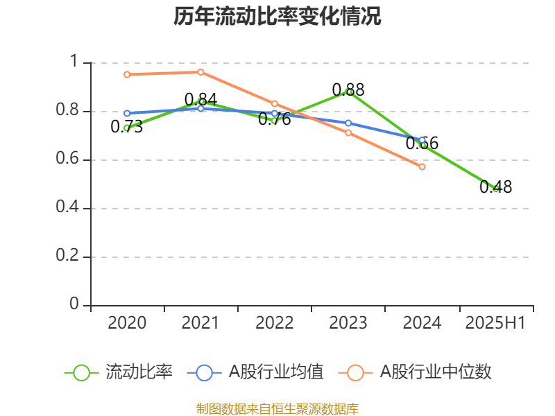 2025年上半年,公司流动比率为0.48,速动比率为0.46。