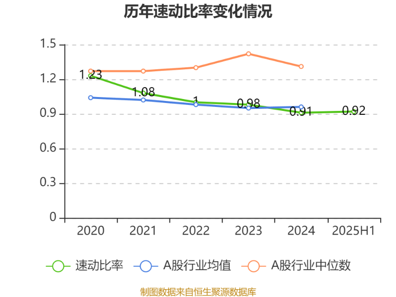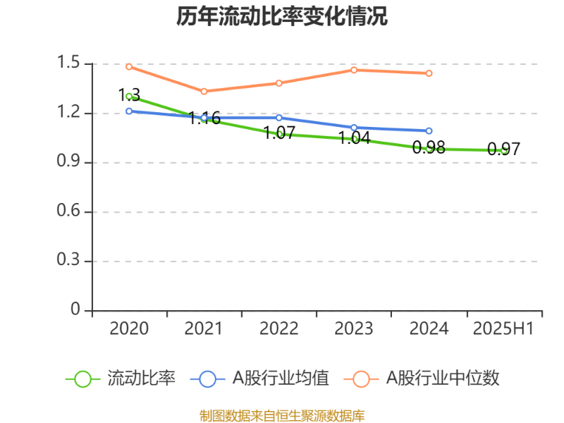 2025年上半年,公司流动比率为0.97,速动比率为0.92。