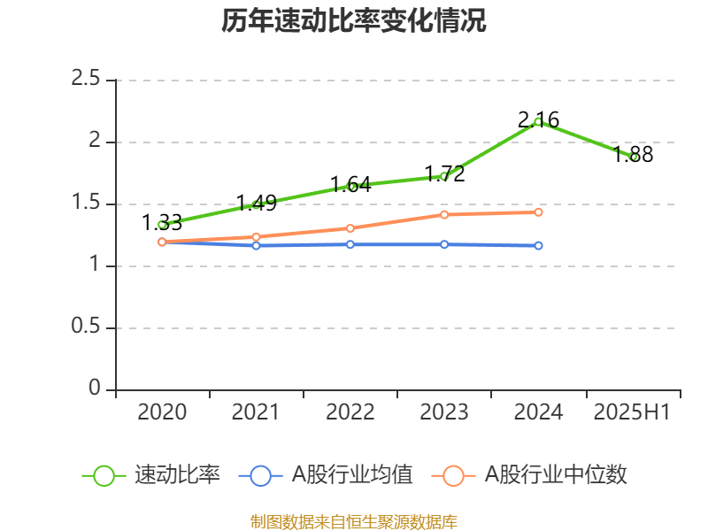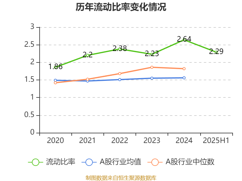 2025年上半年,公司流动比率为2.29,速动比率为1.88。