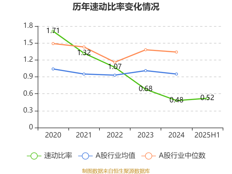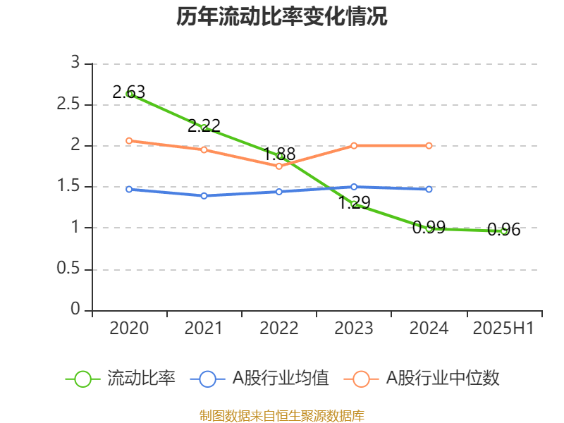 2025年上半年,公司流动比率为0.96,速动比率为0.52。