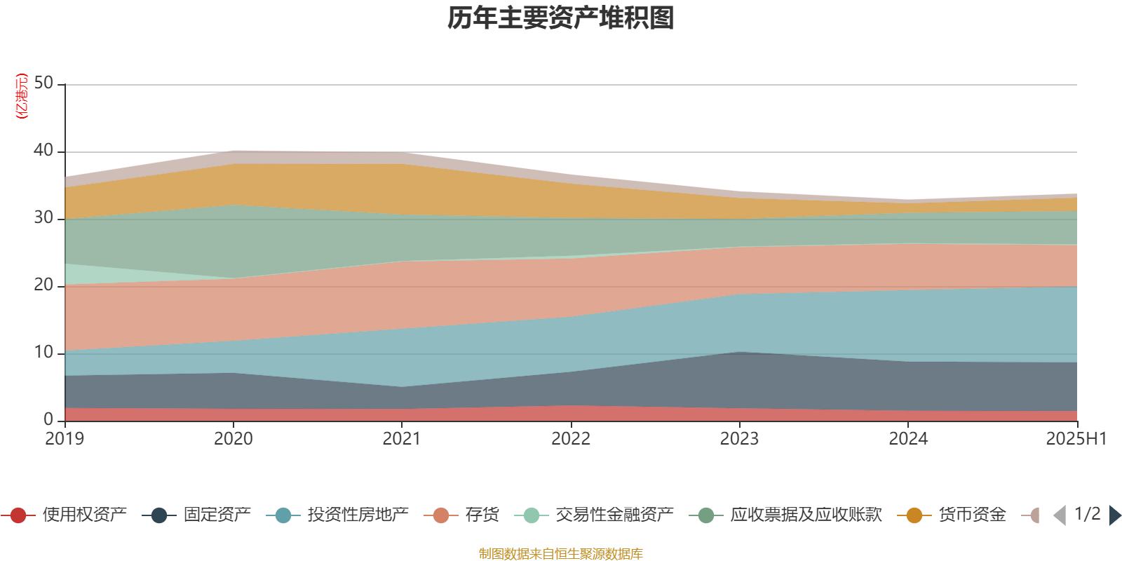 资产重大变化方面,截至2025年上半年,公司存货较上期末减少10.78%,占公司总资产比重下降2.75个百分点;货币资金较上期末增加39.72%,占公司总资产比重上升1.54个百分点;投资性房地产较上期末增加6.08%,占公司总资产比重上升1.07个百分点;应收票据及应收账款较上期末增加10.44%,占公司总资产比重上升1.03个百分点。
