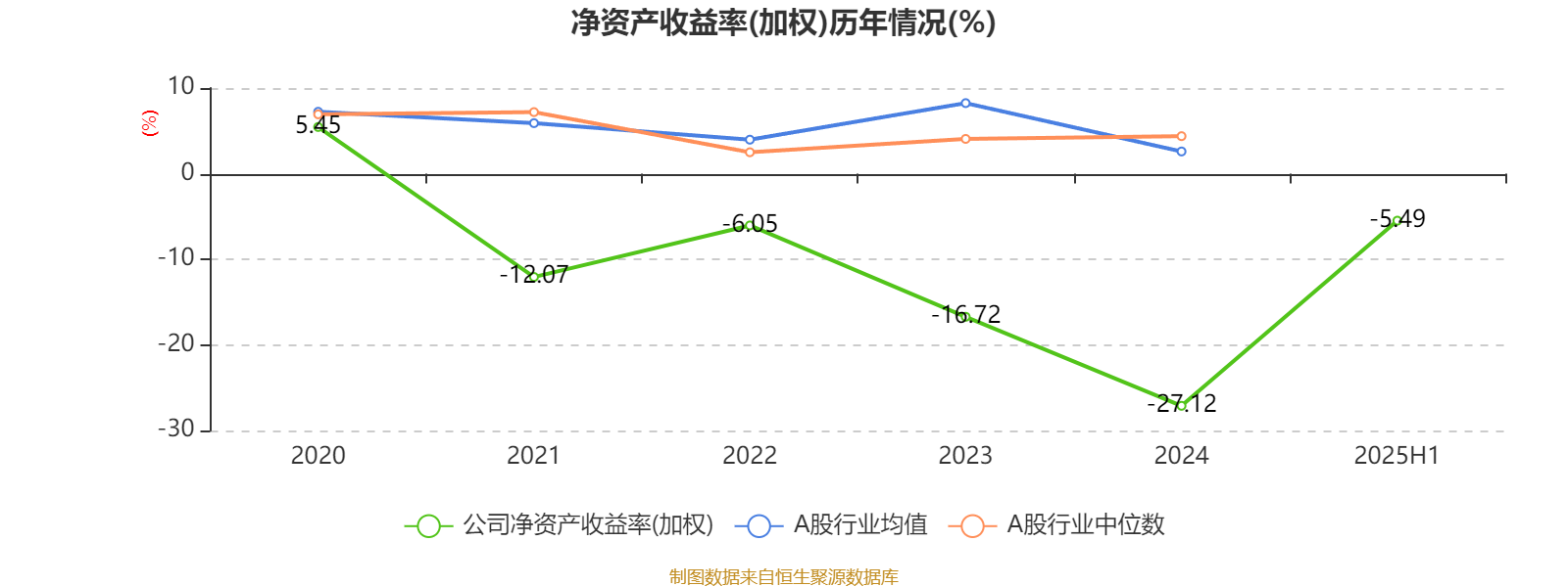 2025年上半年,公司平均净资产收益率为-5.49%,较上年同期上升1.91个百分点。
