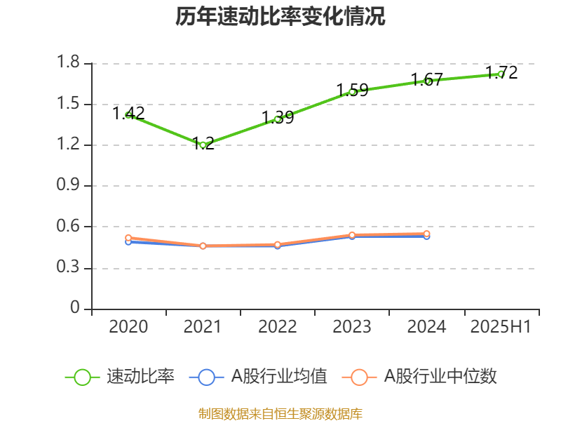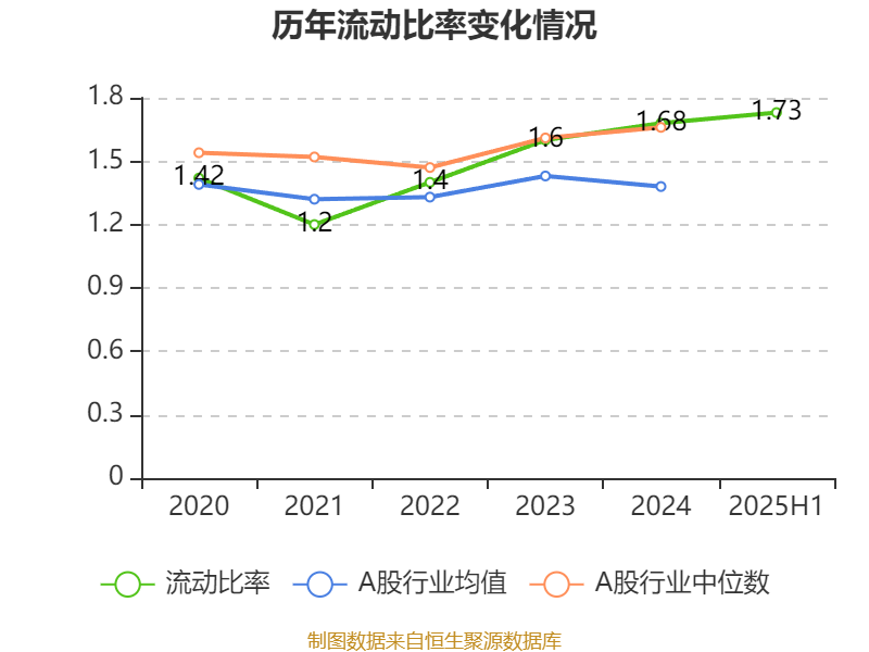 2025年上半年,公司流动比率为1.73,速动比率为1.72。