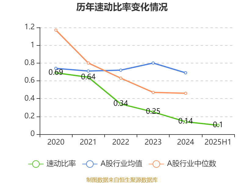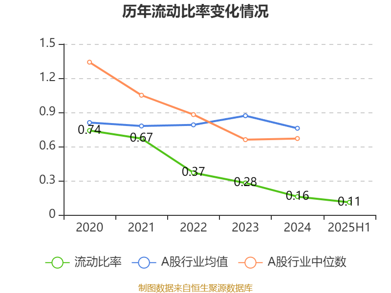2025年上半年,公司流动比率为0.11,速动比率为0.1。