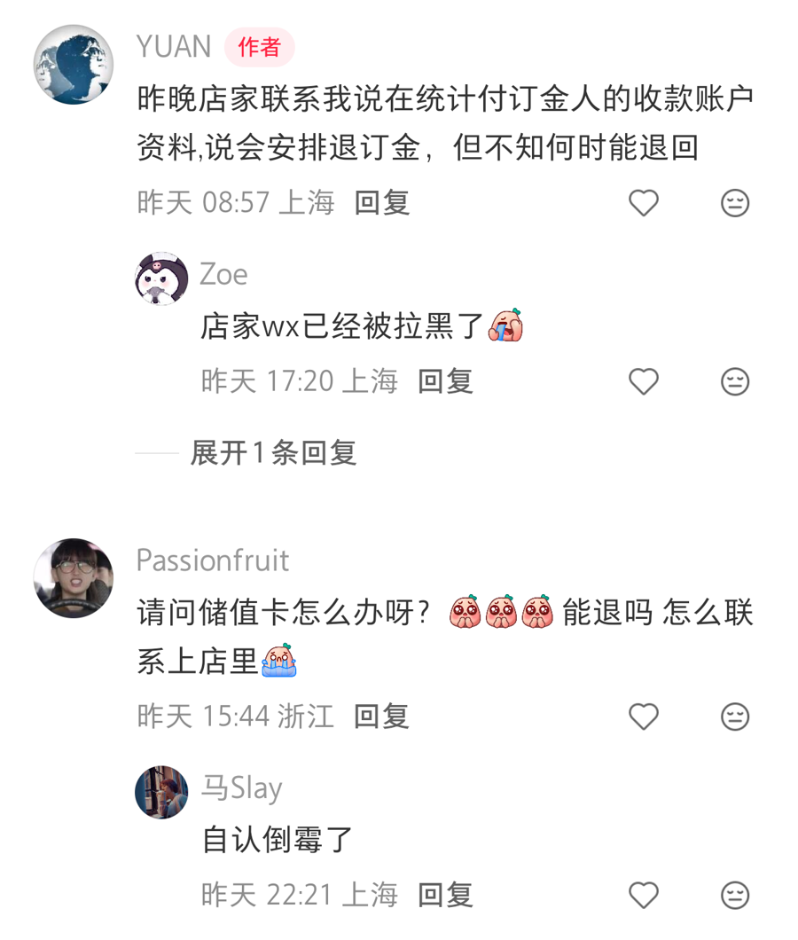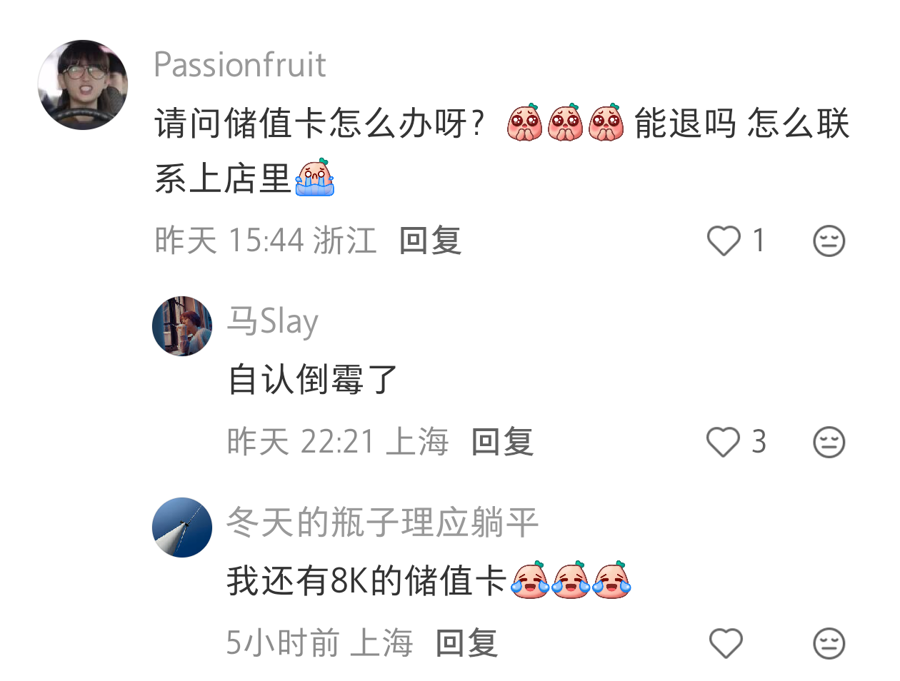 社交媒体上,多位消费者分享了自身遭遇:有消费者表示,2月7日晚曾接到门店工作人员联系,对方称正在统计已支付年夜饭订金顾客的收款账户,将安排退款,但未明确具体退款时间;有消费者透露,自己共购买了价值8000元的上海小南国预付卡,目前已无法通过电话联系到当初发卡的门店,退款无门。