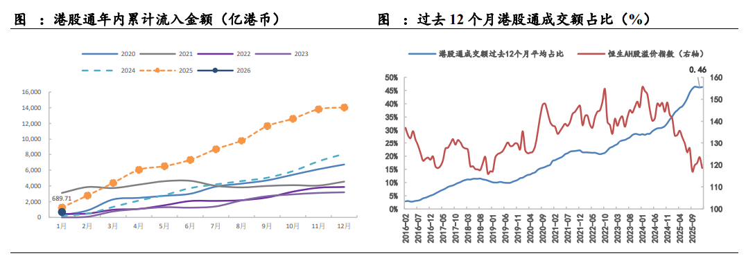 而从中长期视角来看,目前港股仍然具有不错的资金面韧性:整体的宽松环境下由内地资金主导的港股扩容与增配趋势仍然较强,使得目前港股已有较大规模的资金沉淀,港股通南下资金目前在港股的定价权不断增强,在国内宏观经济及政策环境没有发生显著改变之前这一趋势或将延续。我们认为港股的资金基本面尚未出现显著改变,整体较为良好:由于南下资金持续流入带来的资金面支持,以及国内外利率环境的相对宽松,港股仍然具有较强的估值韧性。