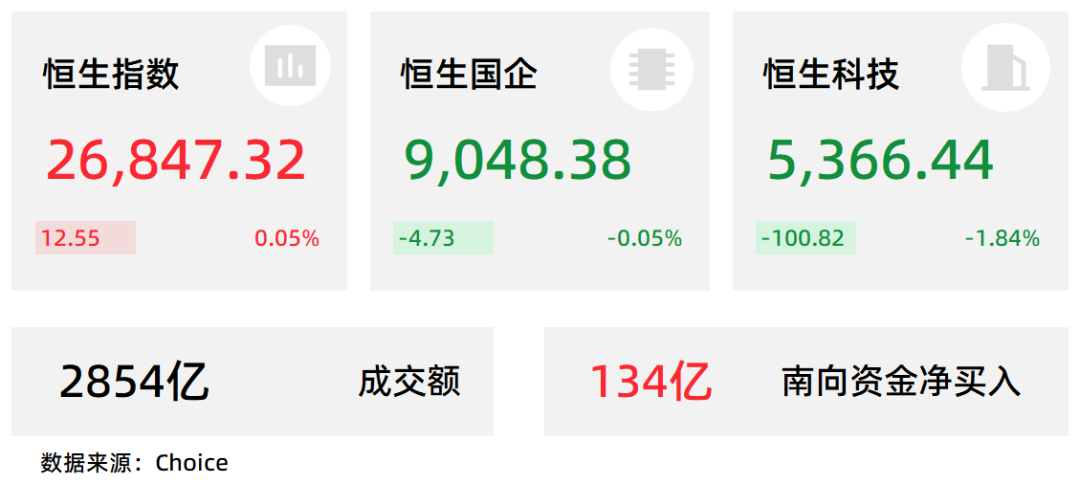 2月4日,港股三大指数走势分化,恒生科技指数下跌1.84%,盘中曾跌至2.7%;恒生指数午后翻红,最终小幅上涨0.05%,国企指数小幅收跌0.05%。
