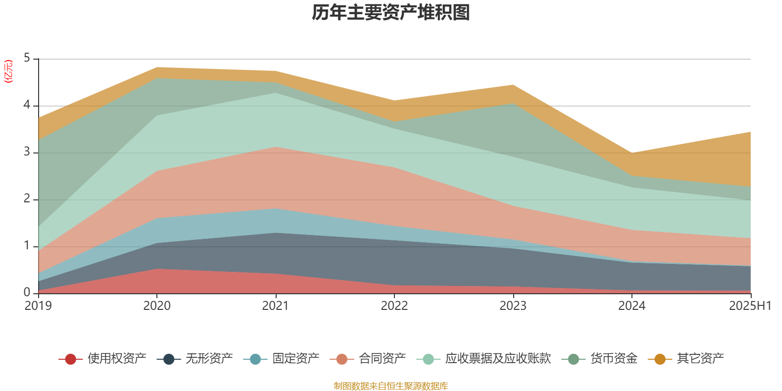 资产重大变化方面,截至2025年上半年,公司应收票据及应收账款较上期末减少11.03%,占公司总资产比重下降6.88个百分点;合同资产较上期末减少12.54%,占公司总资产比重下降5.35个百分点;无形资产较上期末减少12.1%,占公司总资产比重下降4.67个百分点;固定资产较上期末减少56.19%,占公司总资产比重下降0.63个百分点。