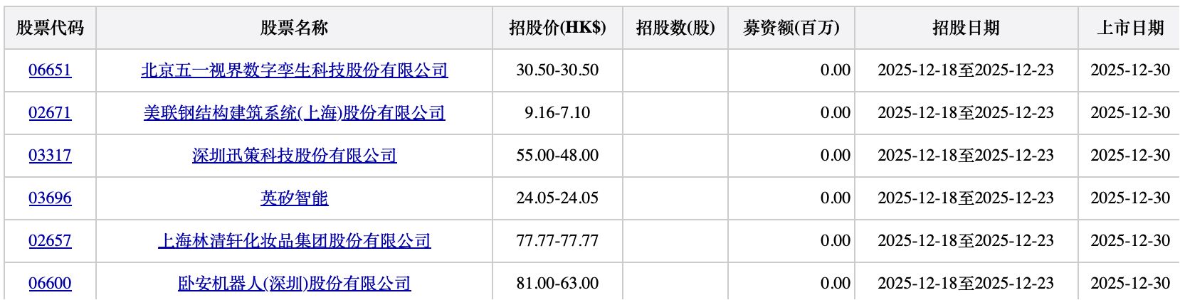 年末冲刺!6家公司同日招股 港股IPO迎来“晚高峰”