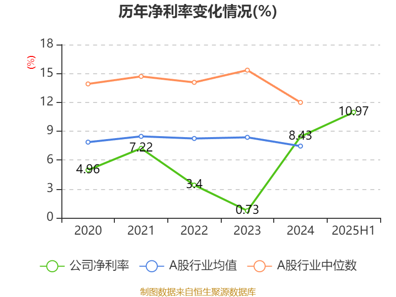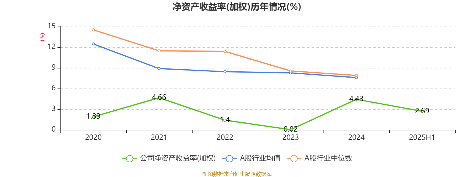 2025年上半年,公司平均净资产收益率为2.69%,较上年同期上升1.15个百分点。