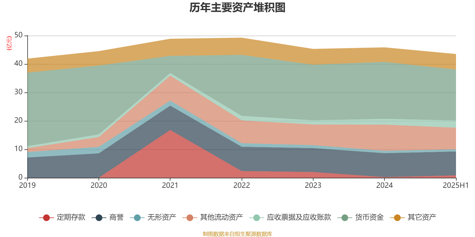 资产重大变化方面,截至2025年上半年,公司其他流动资产较上期末减少17.5%,占公司总资产比重下降2.62个百分点;货币资金较上期末减少10.44%,占公司总资产比重下降2.45个百分点;预付账款较上期末增加49.33%,占公司总资产比重上升1.5个百分点;定期存款较上期末增加276.41%,占公司总资产比重上升1.42个百分点。