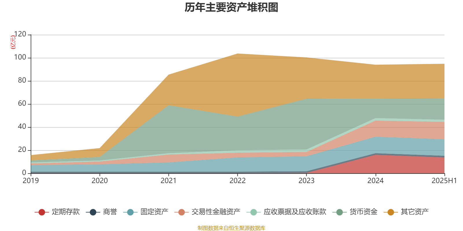 资产重大变化方面,截至2025年上半年,公司定期存款较上期末减少13.84%,占公司总资产比重下降2.46个百分点;货币资金较上期末增加9.12%,占公司总资产比重上升1.49个百分点;交易性金融资产较上期末增加7.71%,占公司总资产比重上升1.02个百分点;预付账款较上期末减少29.88%,占公司总资产比重下降0.39个百分点。