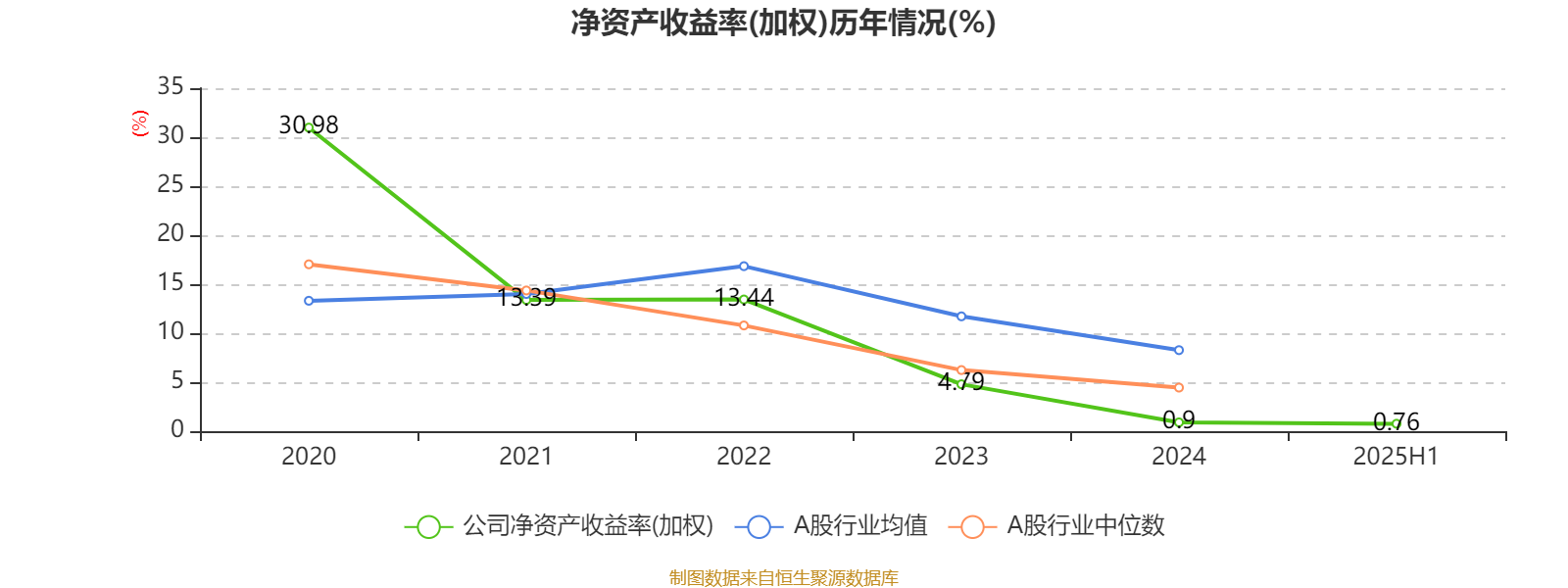 2025年上半年,公司平均净资产收益率为0.76%,较上年同期上升2.85个百分点。