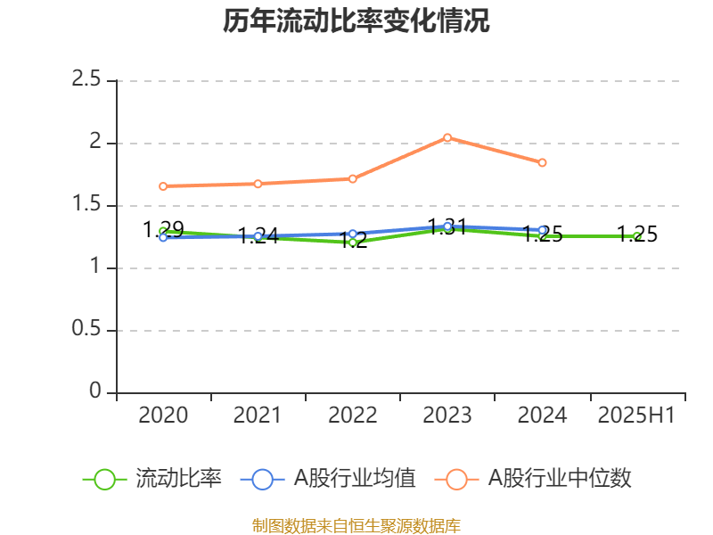 2025年上半年,公司流动比率为1.25,速动比率为1.06。