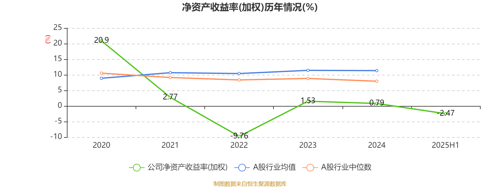 2025年上半年,公司平均净资产收益率为-2.47%,较上年同期下降0.97个百分点。