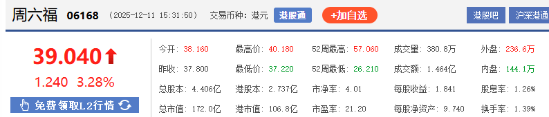 港股异动 | 周六福盘中涨超5% 拟向股东大会寻求董事会回购H股的授权