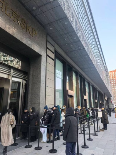 在SKP迎春活动首日,北京、西安、成都、武汉SKP的老铺黄金门店一如既往出现排队长龙,今年排队盛况更超过去年。1月24日上午,记者在北京SKP现场了解到,在1月23日晚间就有数十人开始彻夜排队;到1月24日10点北京SKP营业时间开始,商场已停止发放老铺黄金的排队号牌,总共发放了约四五百人,相当于全天的接待能力。