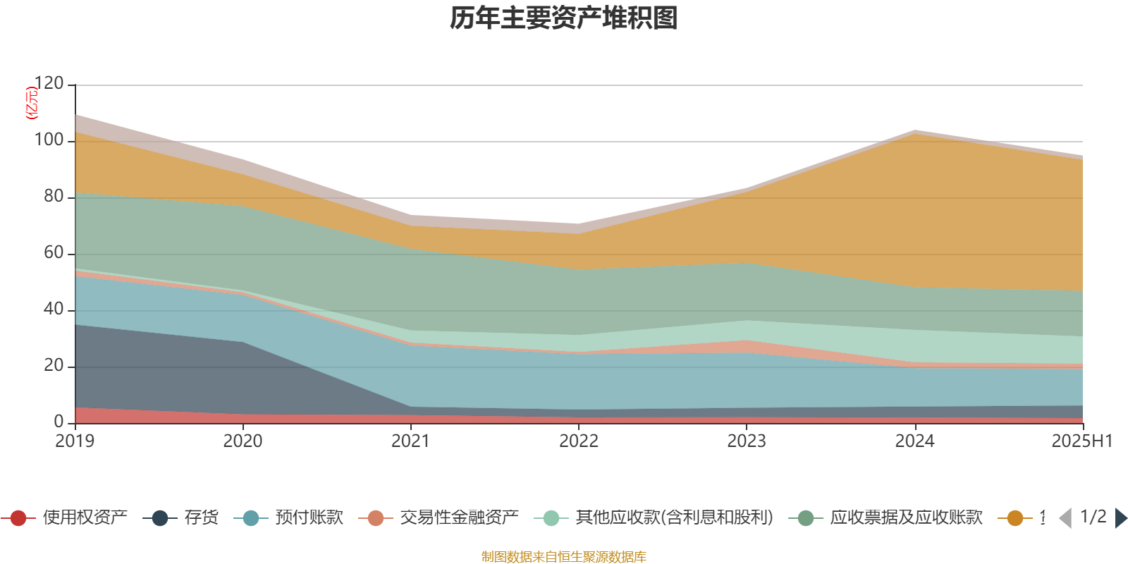 资产重大变化方面,截至2025年上半年,公司货币资金较上期末减少14.7%,占公司总资产比重下降3.37个百分点;应收票据及应收账款较上期末增加7.16%,占公司总资产比重上升2.55个百分点;存货较上期末增加14.31%,占公司总资产比重上升0.94个百分点;其他应收款(含利息和股利)较上期末减少16.3%,占公司总资产比重下降0.91个百分点。