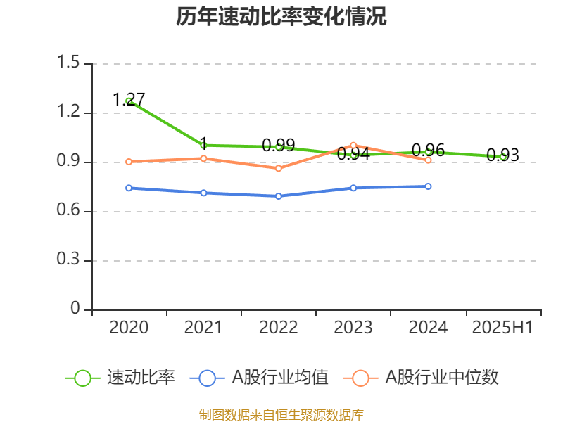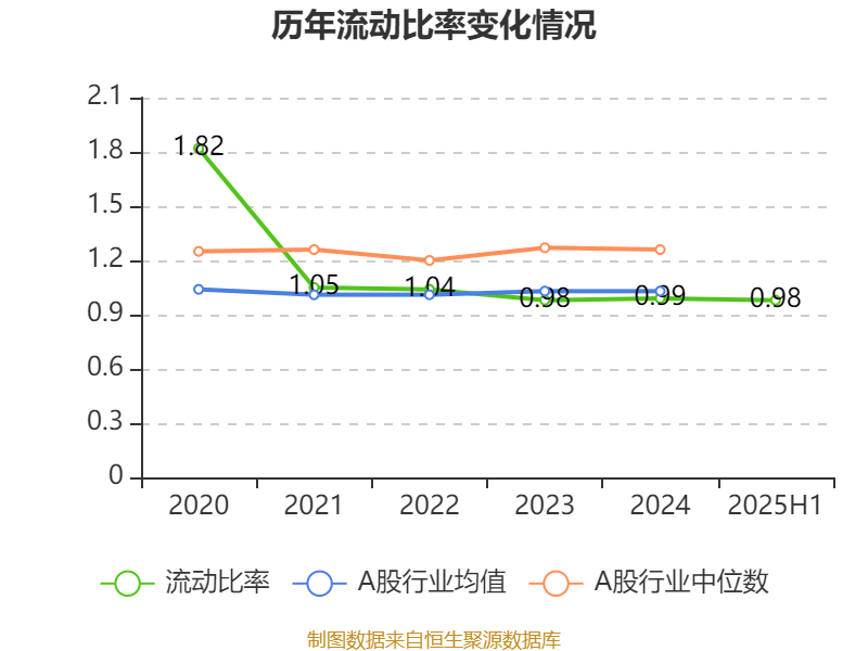 2025年上半年,公司流动比率为0.98,速动比率为0.93。
