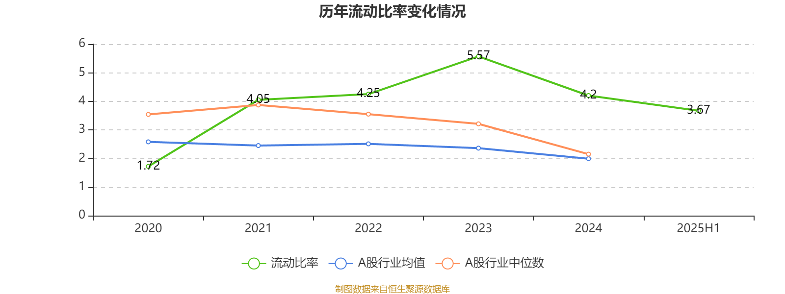 2025年上半年,公司流动比率为3.67。