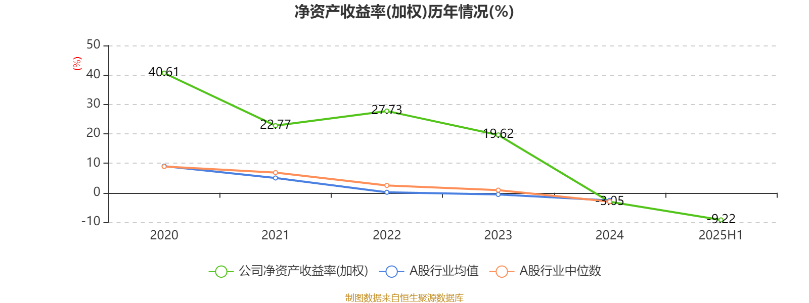 2025年上半年,公司平均净资产收益率为-9.22%,较上年同期下降13.51个百分点。