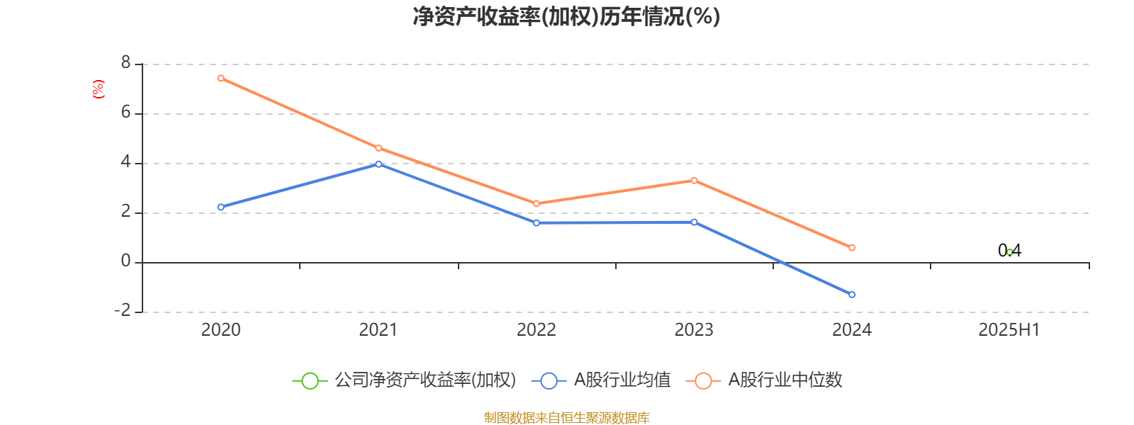 2025年上半年,公司平均净资产收益率为0.4%。