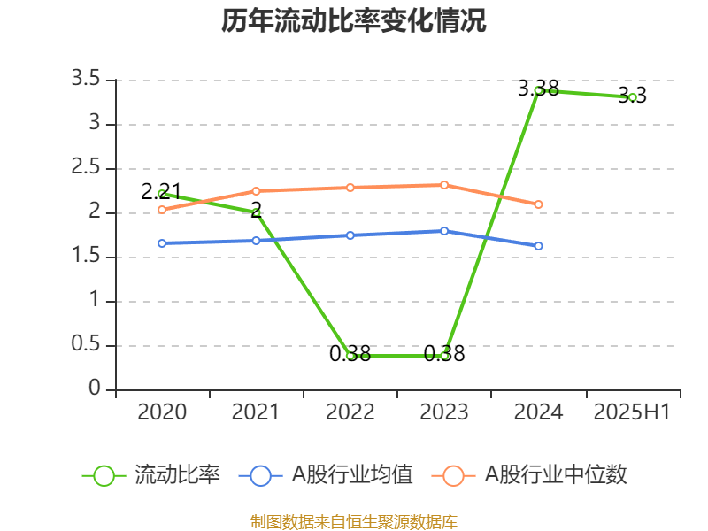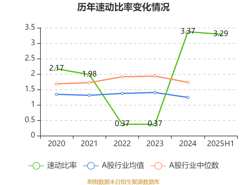 2025年上半年,公司流动比率为3.30,速动比率为3.29。