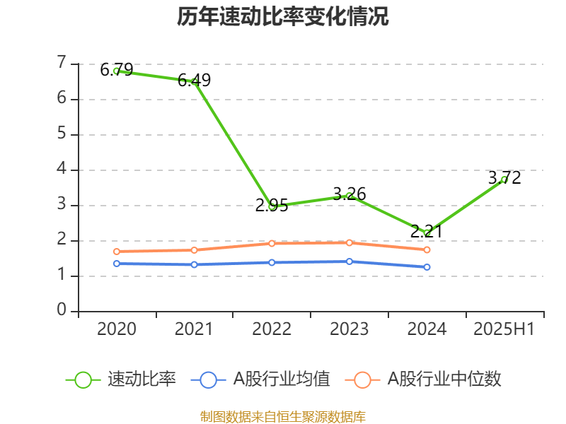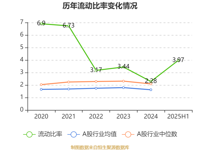 2025年上半年,公司流动比率为3.97,速动比率为3.72。