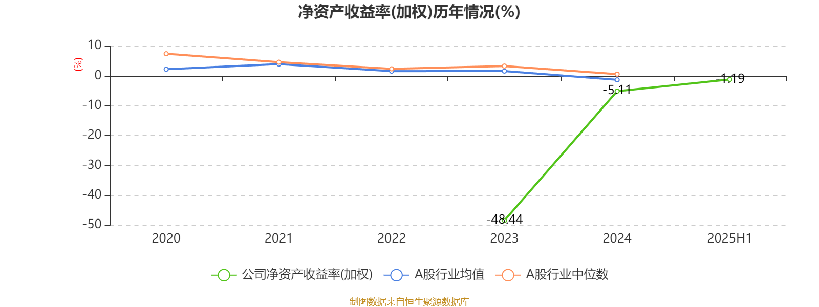 2025年上半年,公司平均净资产收益率为-1.19%,较上年同期上升1.68个百分点。