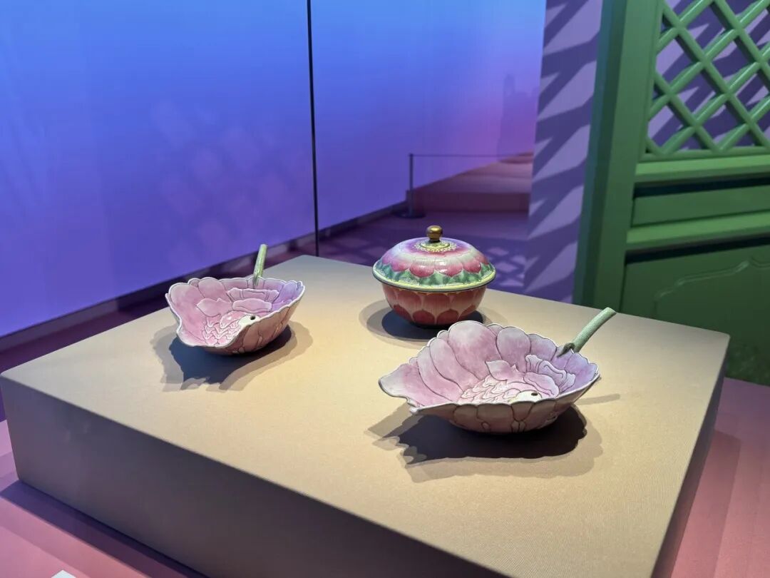 “粉彩浪漫”展区则与周杰伦钟爱的粉色结合,聚焦清代乾隆年间的景德镇窑粉彩堆塑婴戏瓶、粉彩莲纹盖碗等粉彩珍品,让观众穿越时空,对话粉色浪漫。此外,在展馆一楼,观众还可进行文物修复VR体验。