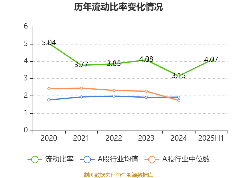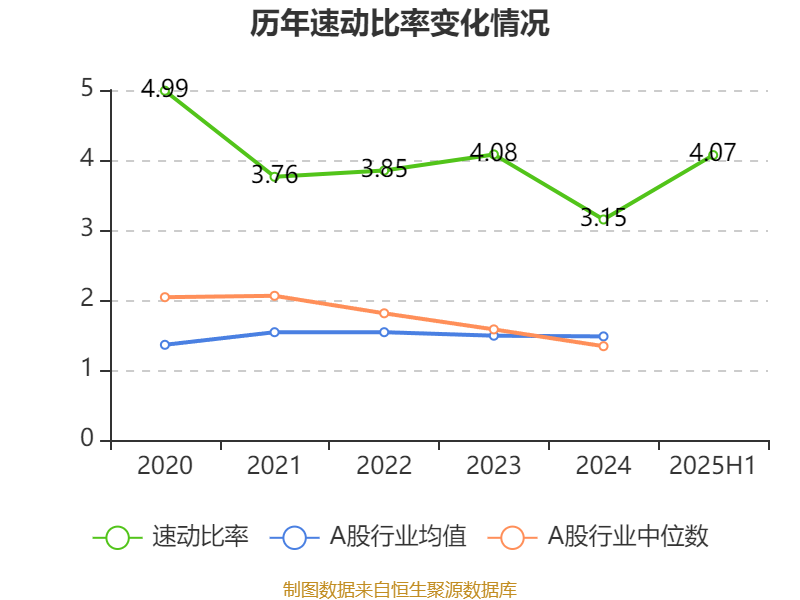 2025年上半年,公司流动比率为4.07,速动比率为4.07。