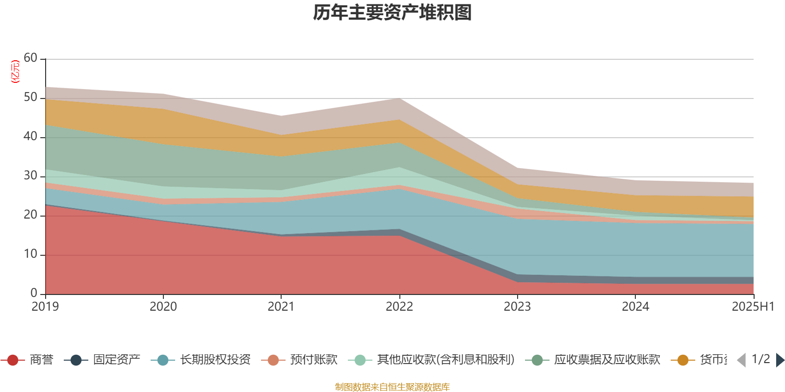 资产重大变化方面,截至2025年上半年,公司货币资金较上期末增加25.31%,占公司总资产比重上升4.14个百分点;其他应收款(含利息和股利)较上期末减少76.23%,占公司总资产比重下降2.94个百分点;应收票据及应收账款较上期末减少30.28%,占公司总资产比重下降0.98个百分点;长期股权投资较上期末减少1.81%,占公司总资产比重上升0.23个百分点。