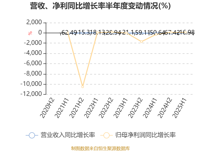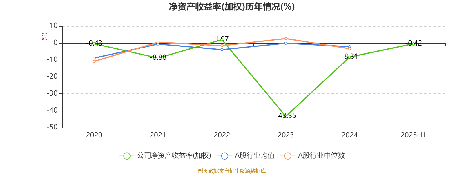 2025年上半年,公司平均净资产收益率为-0.42%,较上年同期上升1.56个百分点。