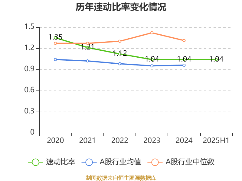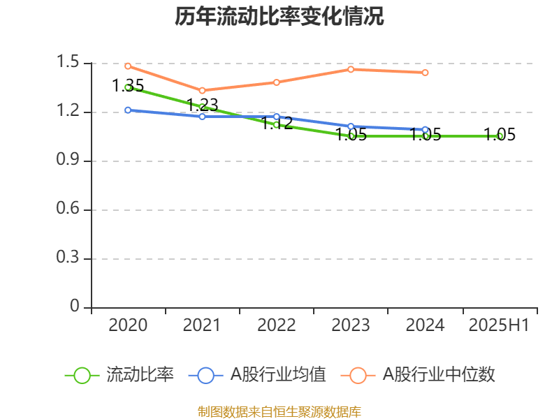 2025年上半年,公司流动比率为1.05,速动比率为1.04。