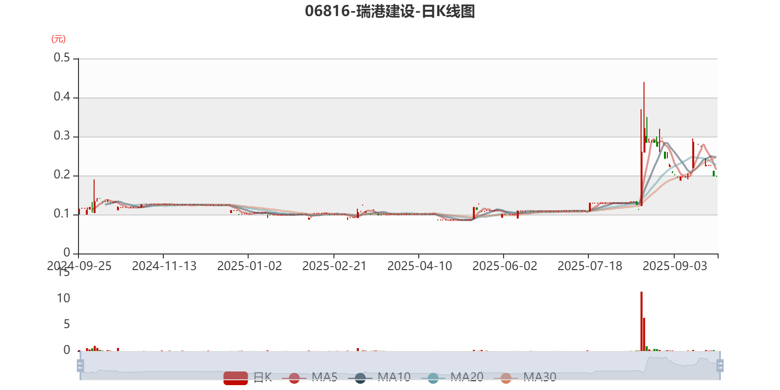 以9月24日收盘价计算,瑞港建设目前市净率(TTM)约1.8倍,市销率(TTM)约0.08倍。