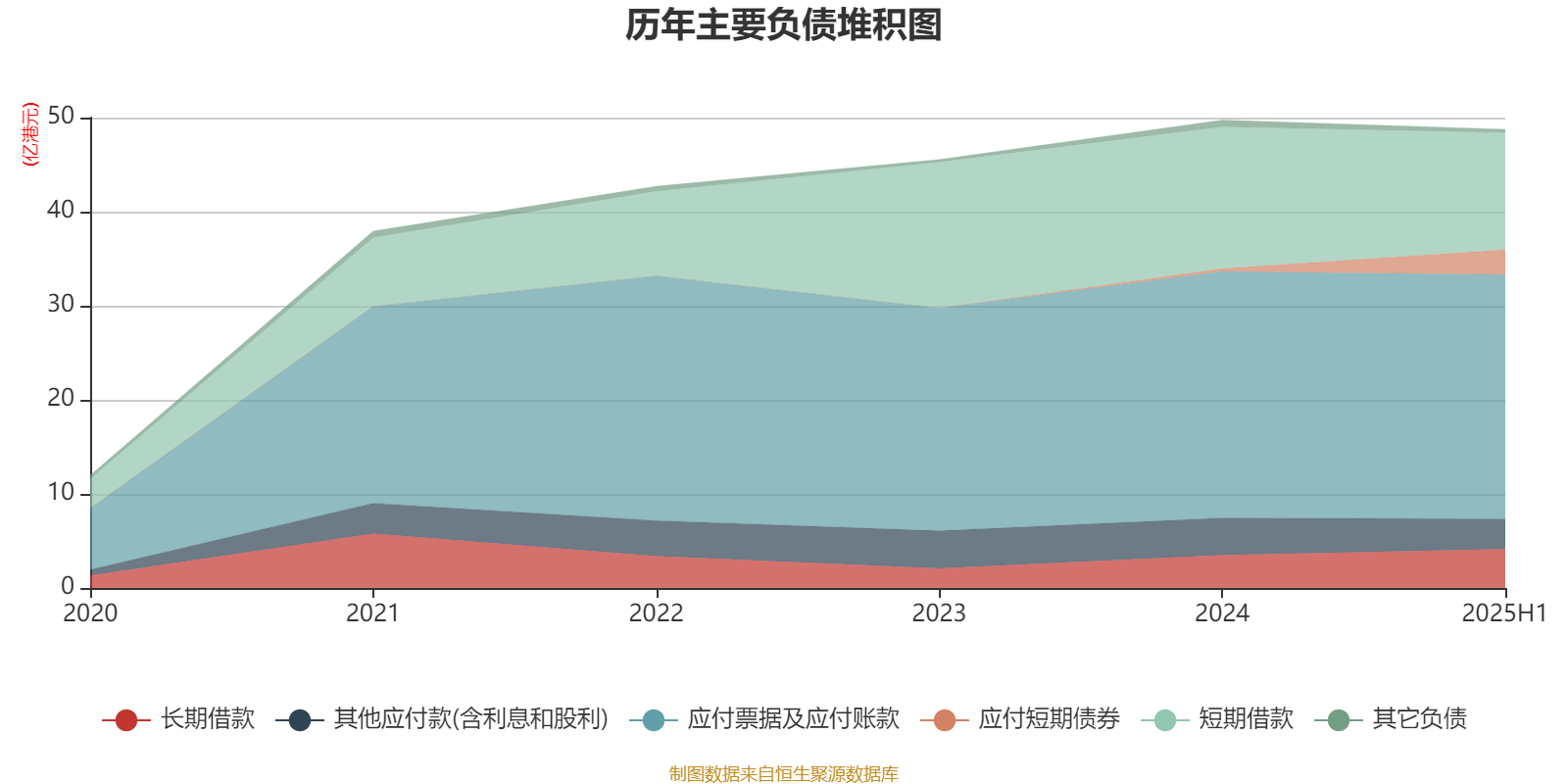 负债重大变化方面,截至2025年上半年,公司应付短期债券较上期末增加790.98%,占公司总资产比重上升4.62个百分点;短期借款较上期末减少17.59%,占公司总资产比重下降4.32个百分点;长期借款较上期末增加18.61%,占公司总资产比重上升1.47个百分点;其他应付款(含利息和股利)较上期末减少19.34%,占公司总资产比重下降1.27个百分点。