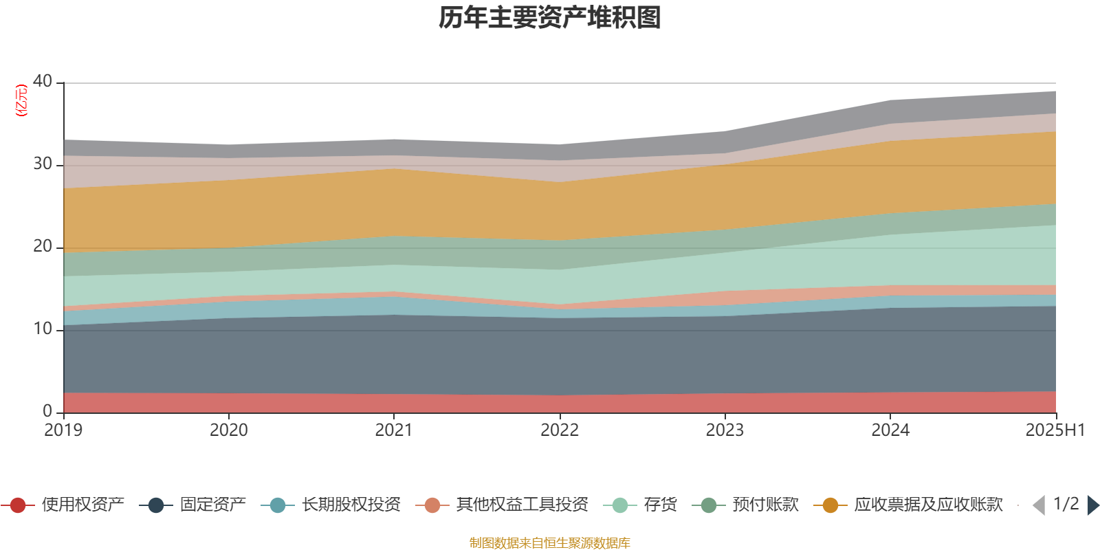 资产重大变化方面,截至2025年上半年,公司存货较上期末增加18.88%,占公司总资产比重上升2.51个百分点;应收票据及应收账款较上期末减少0.01%,占公司总资产比重下降0.65个百分点;长期股权投资较上期末减少8.82%,占公司总资产比重下降0.45个百分点;固定资产较上期末增加1.27%,占公司总资产比重下降0.43个百分点。