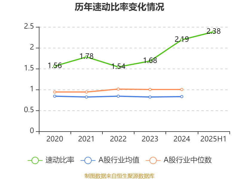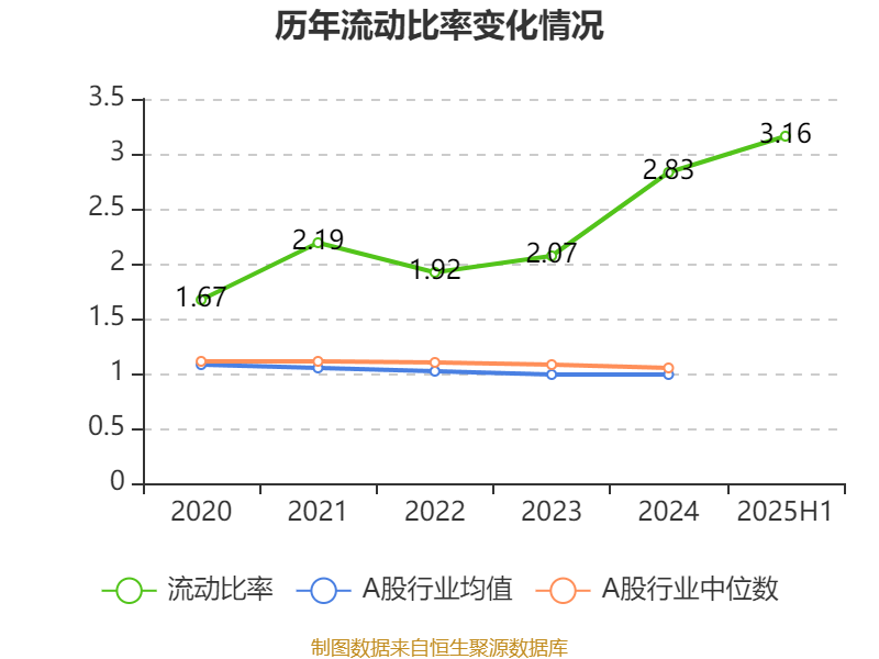 2025年上半年,公司流动比率为3.16,速动比率为2.38。