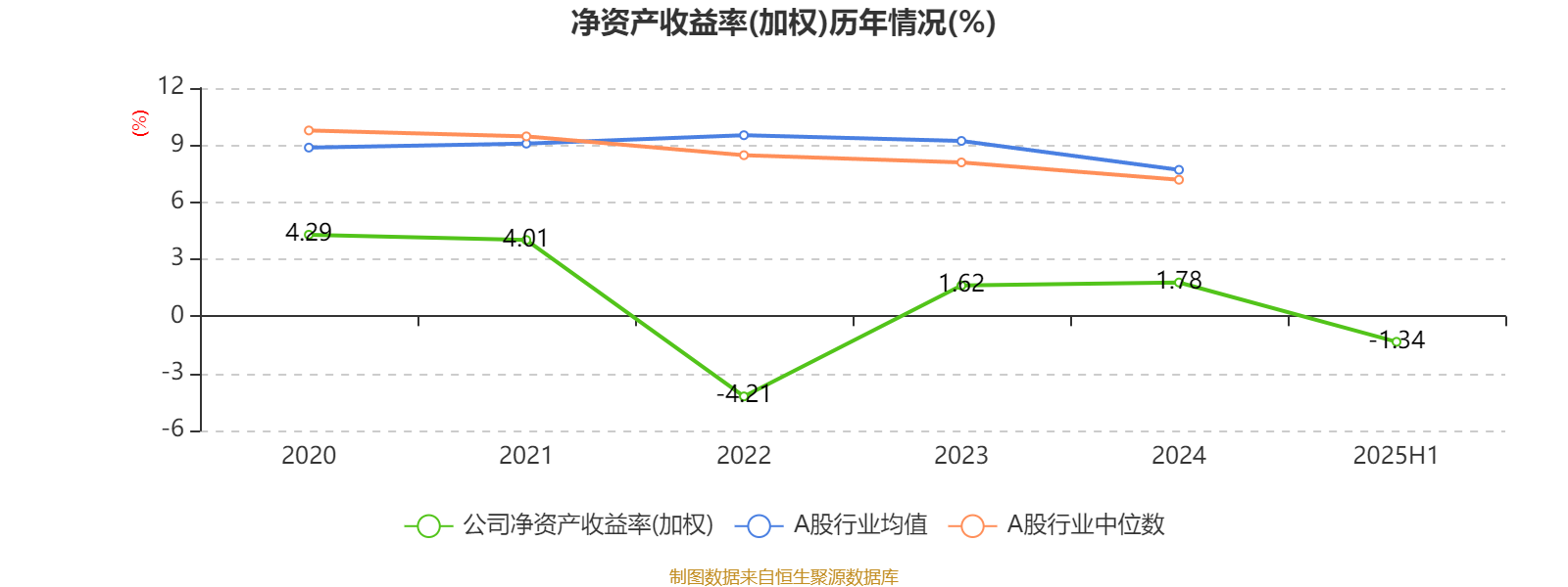 2025年上半年,公司平均净资产收益率为-1.34%,较上年同期下降0.13个百分点。