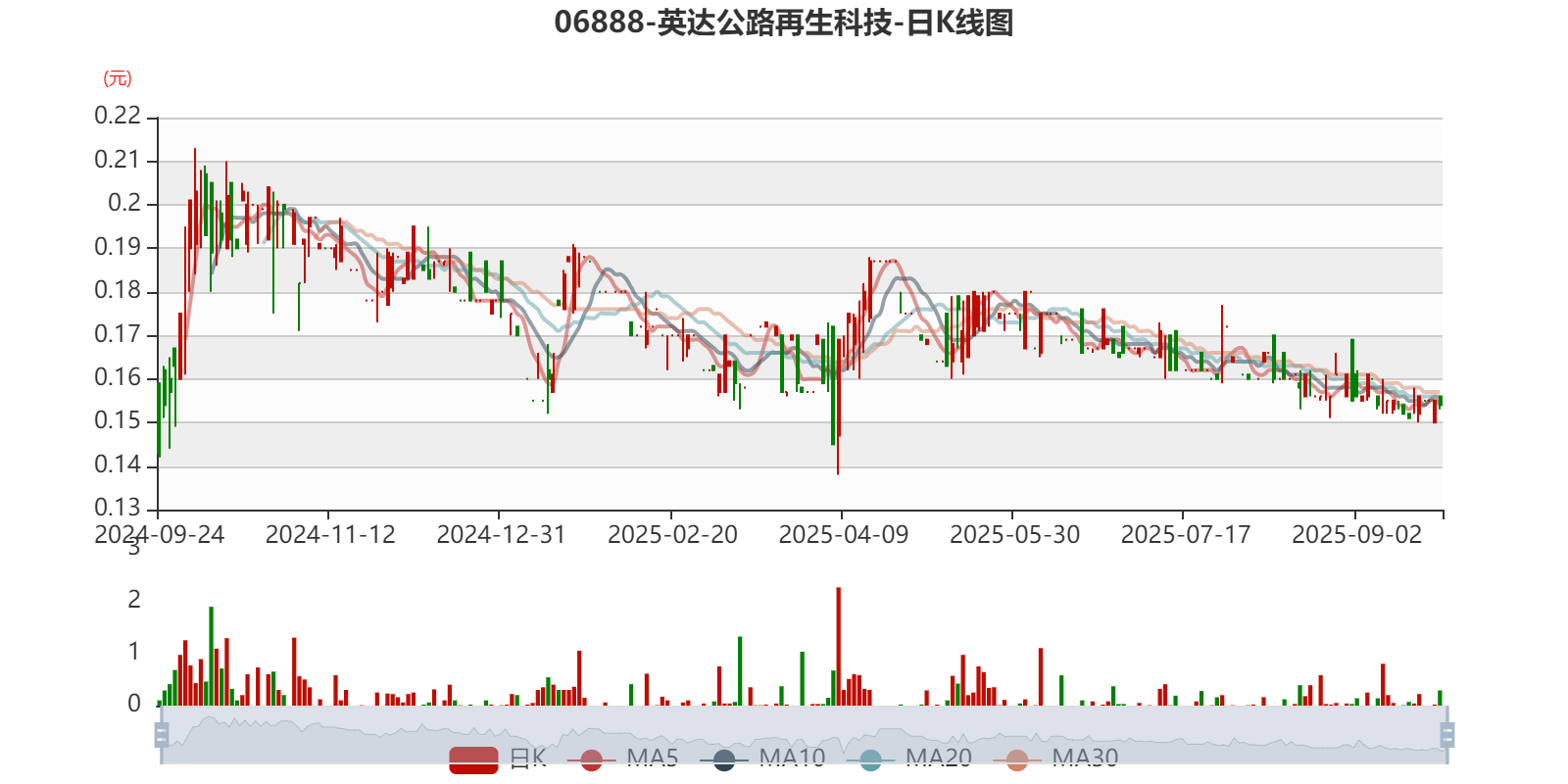 以9月24日收盘价计算,英达公路再生科技目前市盈率(TTM)约14.26倍,市净率(TTM)约0.24倍,市销率(TTM)约0.83倍。