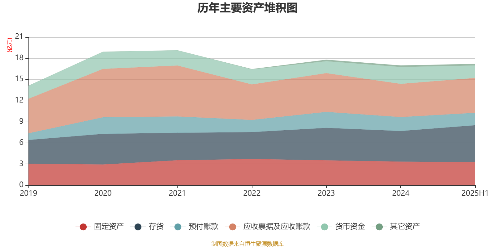 资产重大变化方面,截至2025年上半年,公司存货较上期末增加20.56%,占公司总资产比重上升4.85个百分点;货币资金较上期末减少25.9%,占公司总资产比重下降3.79个百分点;预付账款较上期末减少11.42%,占公司总资产比重下降1.47个百分点;应收票据及应收账款较上期末增加5.23%,占公司总资产比重上升1.06个百分点。