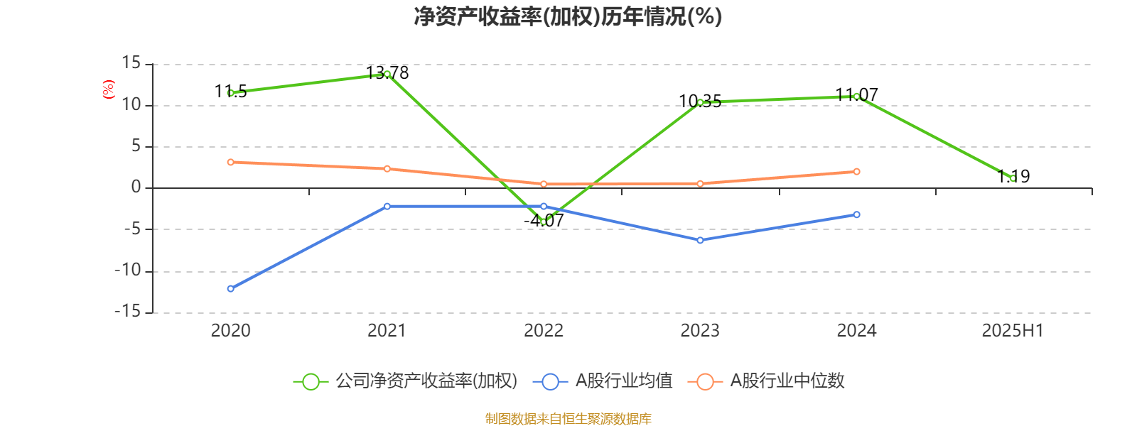 2025年上半年,公司平均净资产收益率为1.19%,较上年同期下降6.43个百分点。