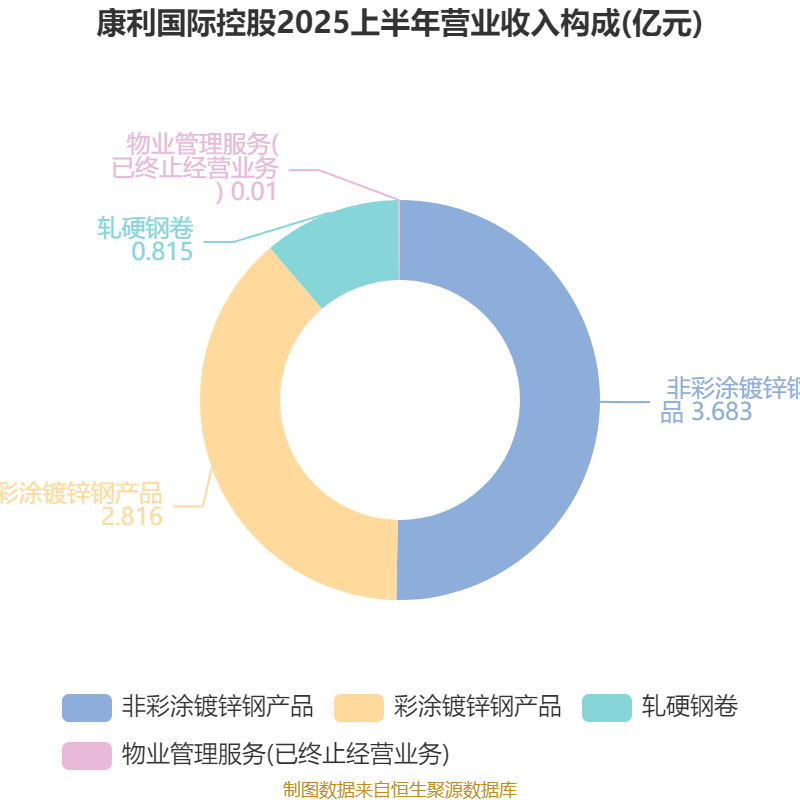 公司主营镀锌钢产品,轧硬钢卷分部从事制造及销售冷轧硬钢卷;非彩涂镀锌钢产品分部从事制造及销售热镀锌钢及镀锌钢卷板;彩涂镀锌钢产品分部从事制造及销售彩涂热镀锌钢卷板;物业管理服务分部从事提供物业管理服务。产品主要用于生产冰箱、洗衣机、烤箱等家电。