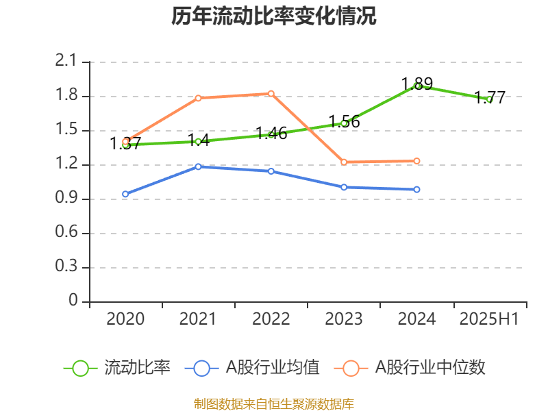 2025年上半年,公司流动比率为1.77,速动比率为1.1。
