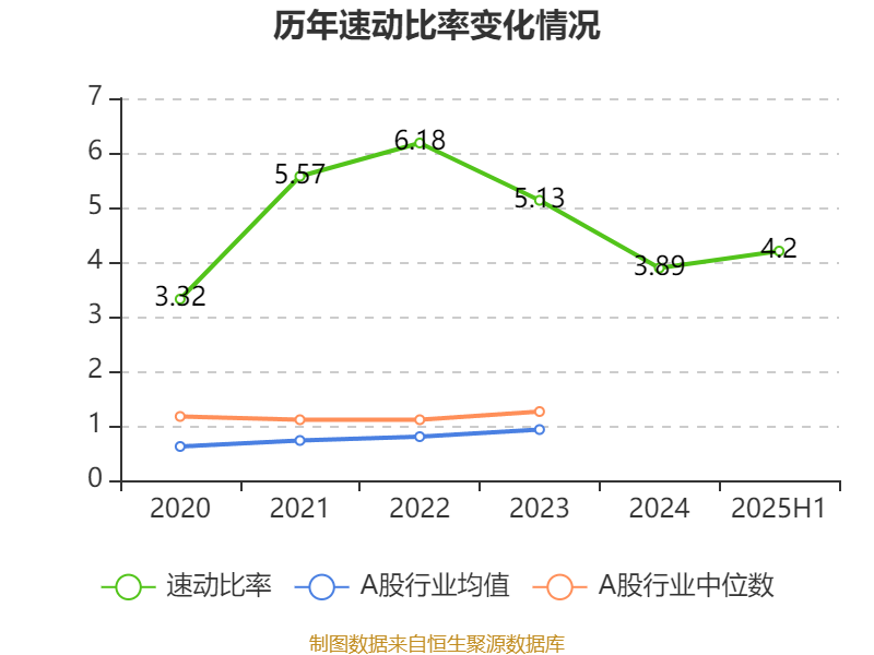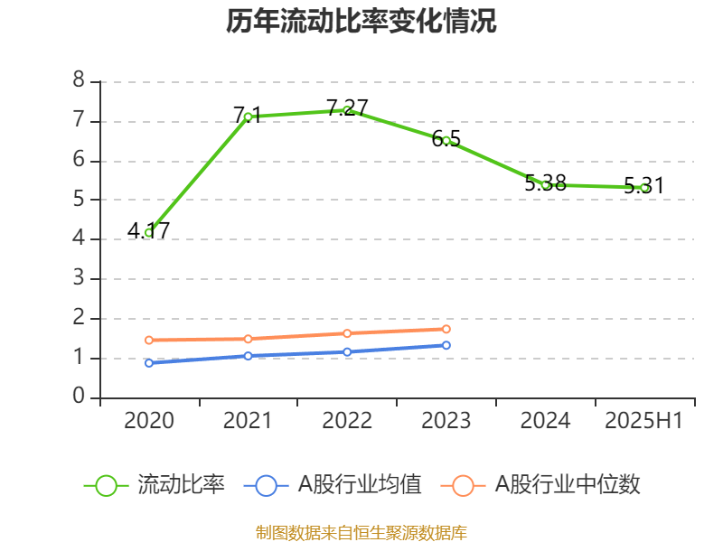 2025年上半年,公司流动比率为5.31,速动比率为4.2。