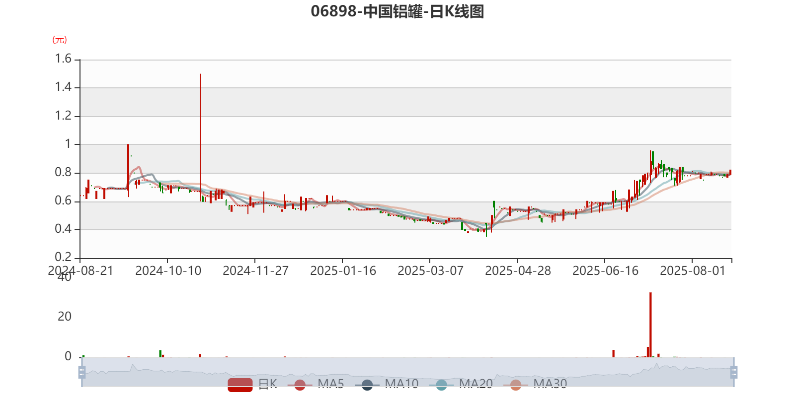 以8月21日收盘价计算,中国铝罐目前市盈率(TTM)约48.62倍,市净率(TTM)约2.93倍,市销率(TTM)约3.47倍。