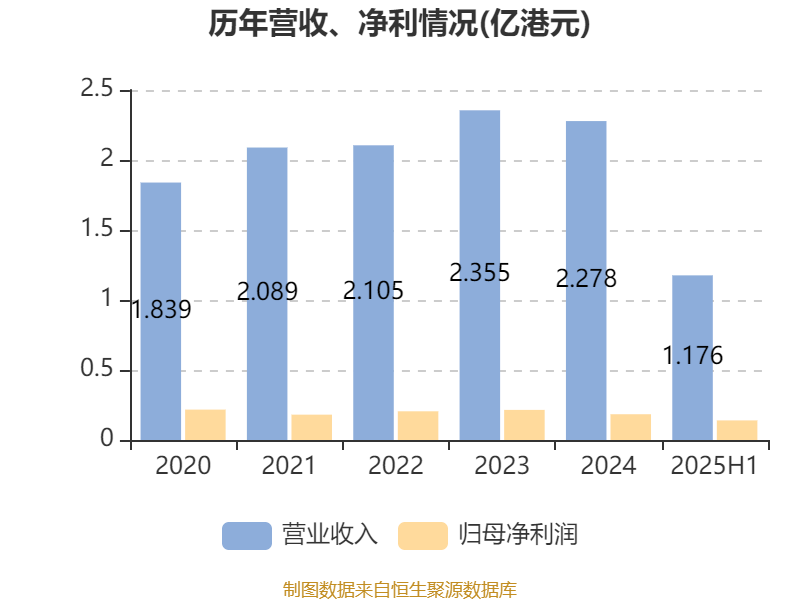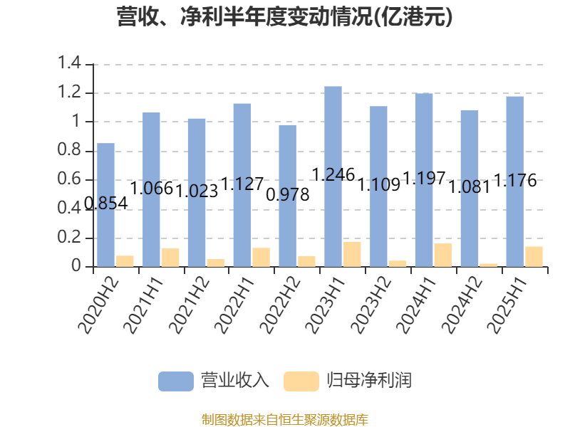 中证智能财讯中国铝罐(06898)8月21日披露2025年中期报告。报告期内,公司实现营业收入1.18亿港元,同比下降1.71%;归母净利润1395.6万港元,同比下降13.79%;据报告显示,中国铝罐基本每股收益为0.015港元,平均净资产收益率为5.36%。公司2025年中期分配预案为:每股派息0.0015港元。